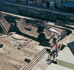 En la Ciudad de México se hallan ruinas pertenecientes a Tenochtitlán en el zócalo capitalino tras la excavación de la Compañía de Luz y Fuerza. Por igual fue descubierto un monolito de la diosa lunar Coyolxauhqui.